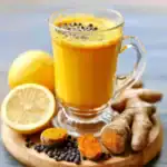 ½ tsp turmeric + pinch of black pepper + 1 tsp coconut oil stirred into warm water or plant-based milk. Add lemon or ginger for extra detox power.